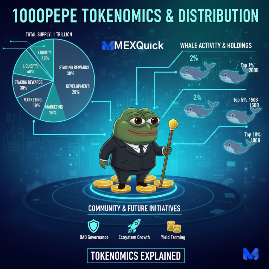 Before we analyze the whales, we need to understand the economic structure they’re operating within. 1000pepe tokenomics refers to the economic policies that govern the token.